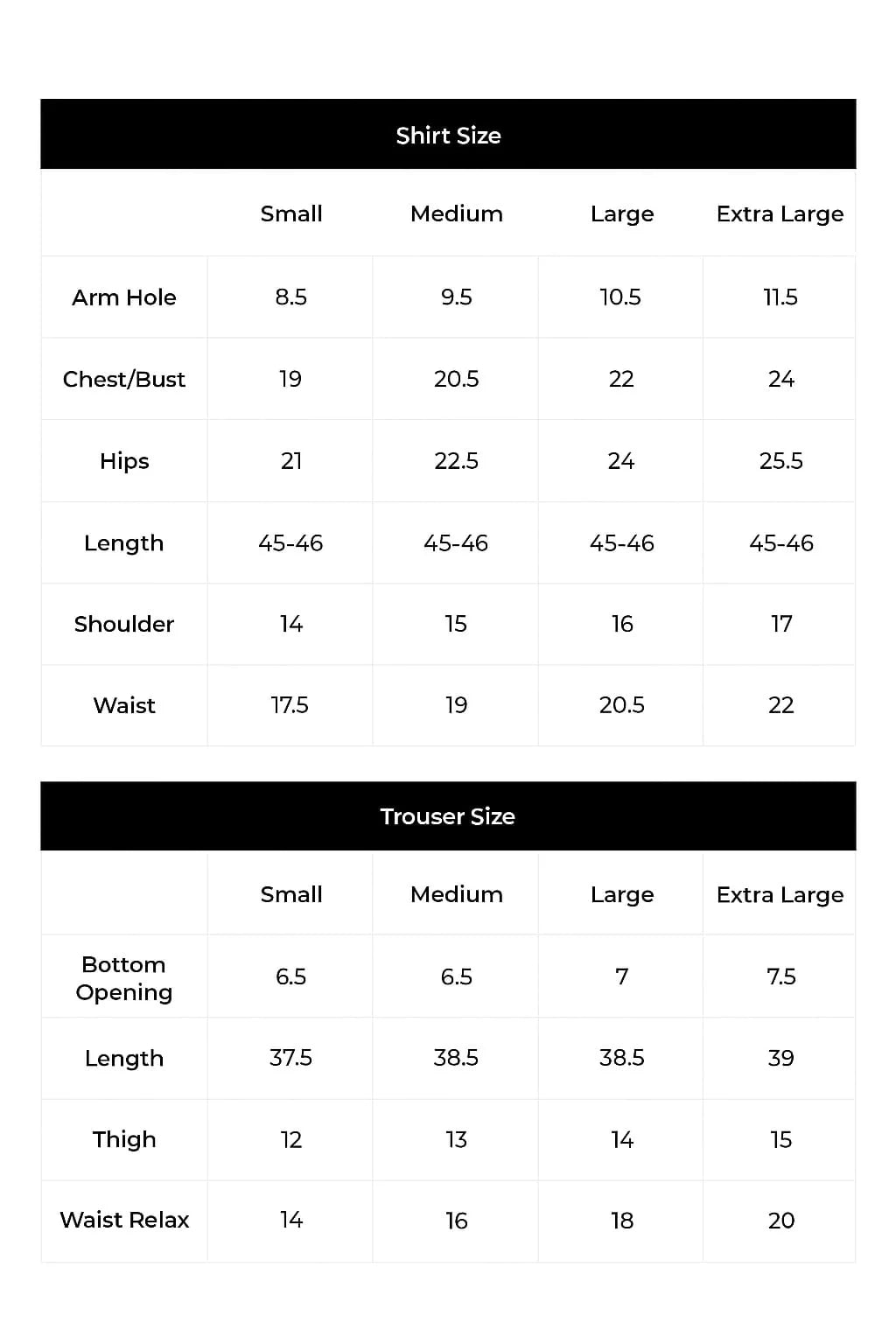 Sizes available