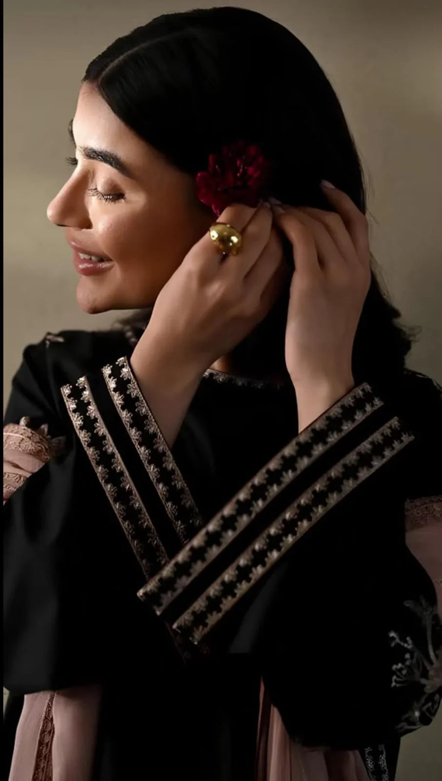Design: Intricate embroidery with refined finishing